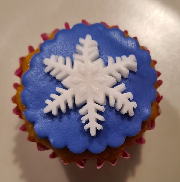 This box of 6 cupcakes contain 6 vanilla cupcakes topped with fondant snowflakes