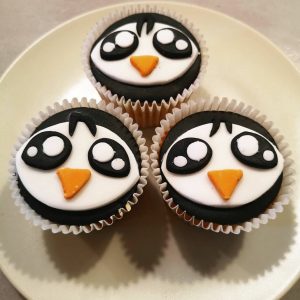 Chocolate Cupcake topped with Fondant Penguins Box of 6
